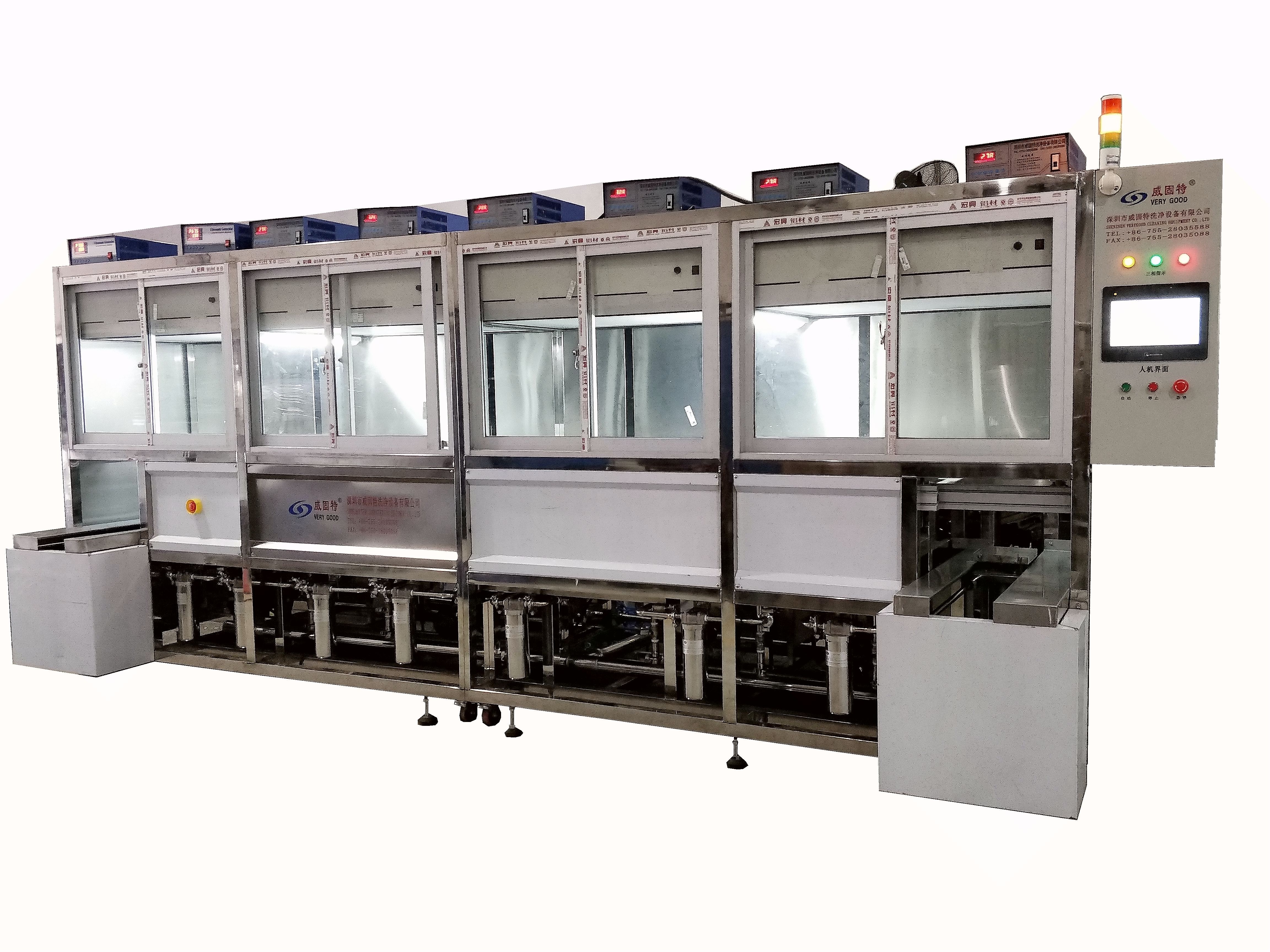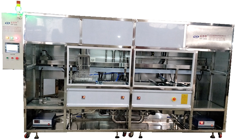 威固特生產(chǎn)商研發(fā)的-發(fā)動機零部件除油除垢超聲波清洗機深圳市威固特發(fā)動機零部件除油除垢超聲波清洗機設(shè)備配置有循環(huán)過濾系統(tǒng)、觸摸屏系統(tǒng)、拋動系統(tǒng)、噴淋系統(tǒng)、超聲波清洗系統(tǒng)、定時調(diào)溫系統(tǒng)。采用清洗劑洗滌、純水漂洗、機械手完成工序間的傳遞。設(shè)有自動上、下料系統(tǒng),輕松實現(xiàn)整機功能。