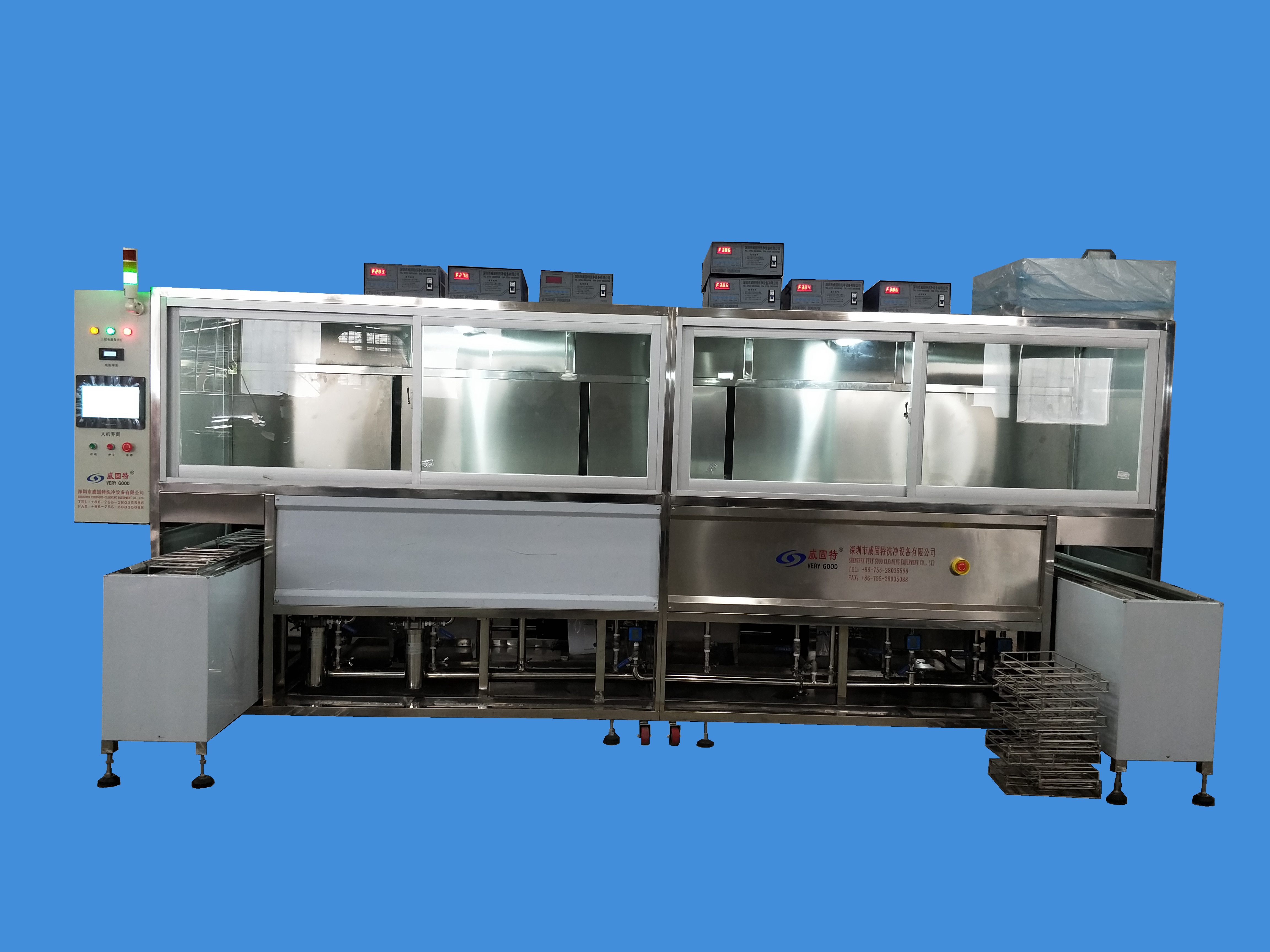 威固特全自動石英晶振監(jiān)控片深圳超聲波清洗機設(shè)備共有8個功能槽,配置有循環(huán)過濾系統(tǒng)、自動恒溫系統(tǒng)、觸摸屏系統(tǒng)、拋動系統(tǒng)、超聲波清洗系統(tǒng)、預(yù)熱箱系統(tǒng)、溢流系統(tǒng)、噴淋系統(tǒng)等。